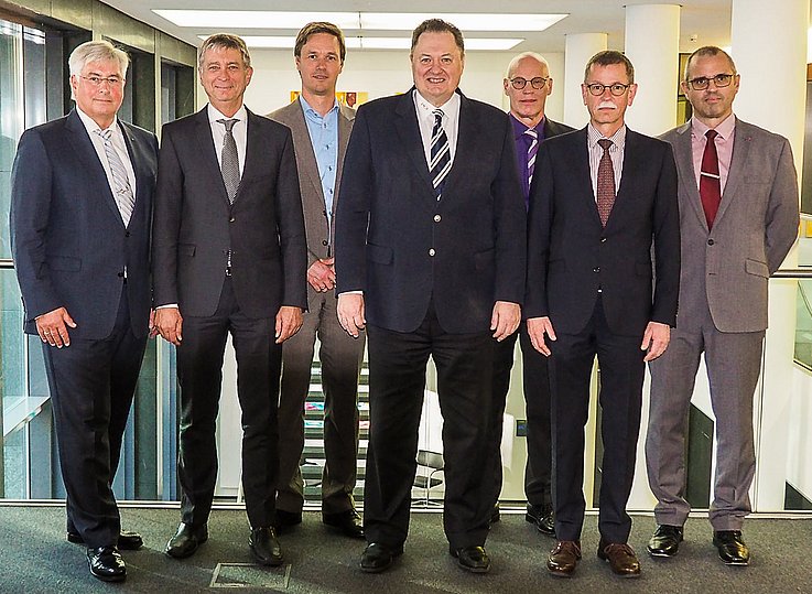 Der QDB-Vorstand 2018 (v.r.) Dipl.-Ing. Stefan Großmann (Sopro Bauchemie GmbH), Dr.-Ing. Peter Hammerschmitt (Sto SE & Co. KGaA), Dipl.-Ing. Axel Ostgathe (GCP Germany GmbH), Prof. Dr. Josef Felixberger (PCI Augsburg GmbH), Dr.-Ing. Patrick Schäffel (PAGEL Spezial-Beton GmbH), ), Dr. Heinz Ephardt (Sika Deutschland GmbH), Dipl.-Ing. Norbert Schröter (Geschäftsführendes Vorstandsmitglied)