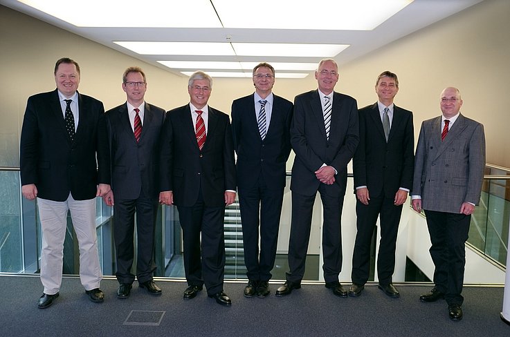 Der neue Vorstand der QDB (v.r.): Dipl.-Chem. Matthias Oly (Grace Bauprodukte GmbH), Dr. Heinz Ephardt (Sika Deutschland GmbH), Hans-Ferdinand Flottmeier (PAGEL Spezial-Beton GmbH & Co. KG), Johann Müller (Sto AG), Dipl.-Ing. Norbert Schröter (GF), Dipl.-Ing. Holger Graeve (MC-Bauchemie Müller GmbH & Co. KG) und Prof. Dr. Josef Felixberger (PCI Augsburg GmbH)